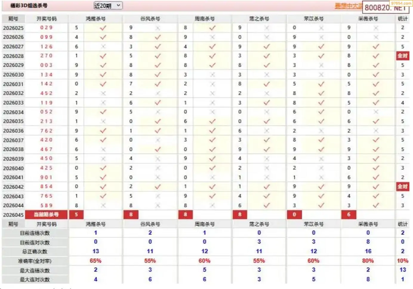胡八一3d26年045期杀号一胆 6连中