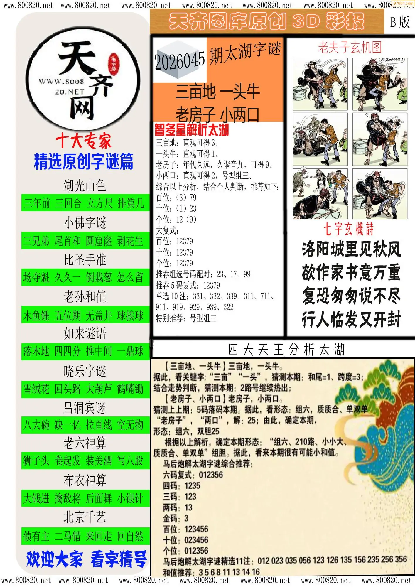 26年045期乐彩网摘专解太湖三字谜