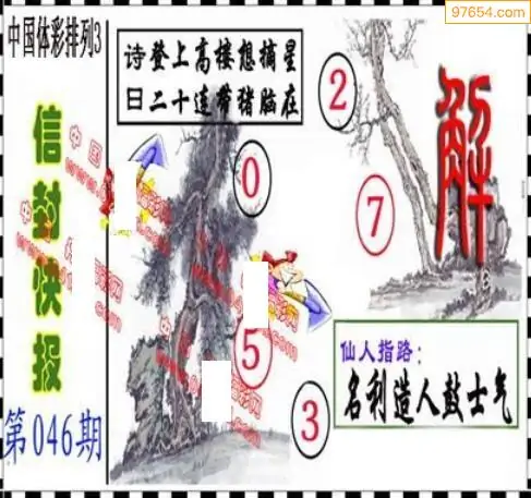 26年天吉体彩P3玄机怪字046期图迷