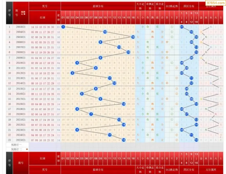 021期双色球历史同期图表+走势图