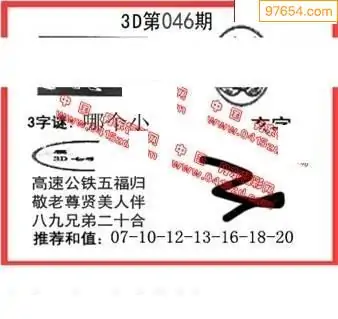 (3)2026046期3D预测总汇全图_福彩3d图谜字谜总汇