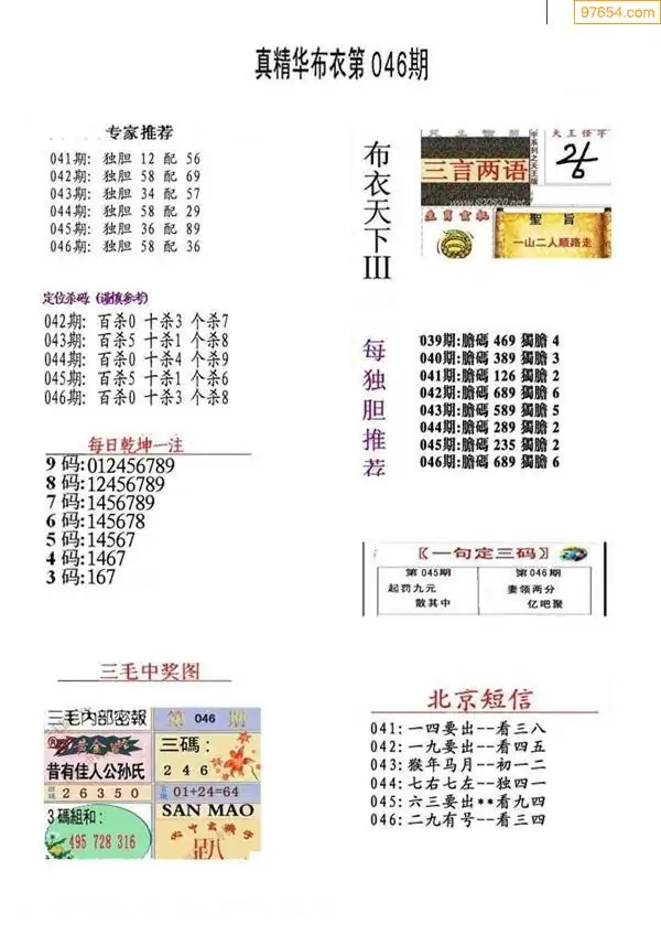 (2)26年046期本期3d图迷汇总_福彩3D图谜总汇图