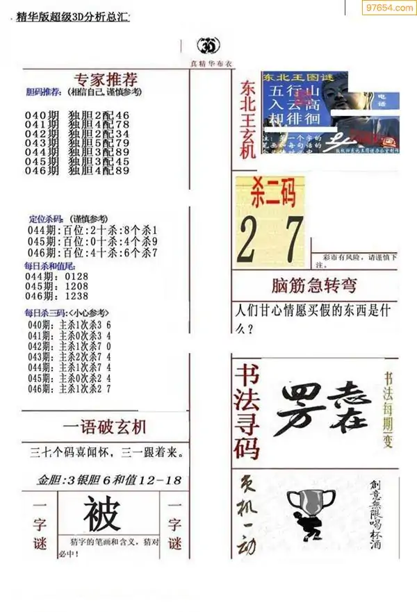 (3)2026045期3D预测总汇全图_福彩3d图谜字谜总汇