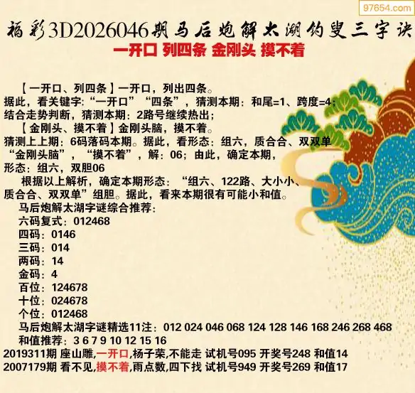 福彩3d26年046期风雨钱程解太湖玄机诗