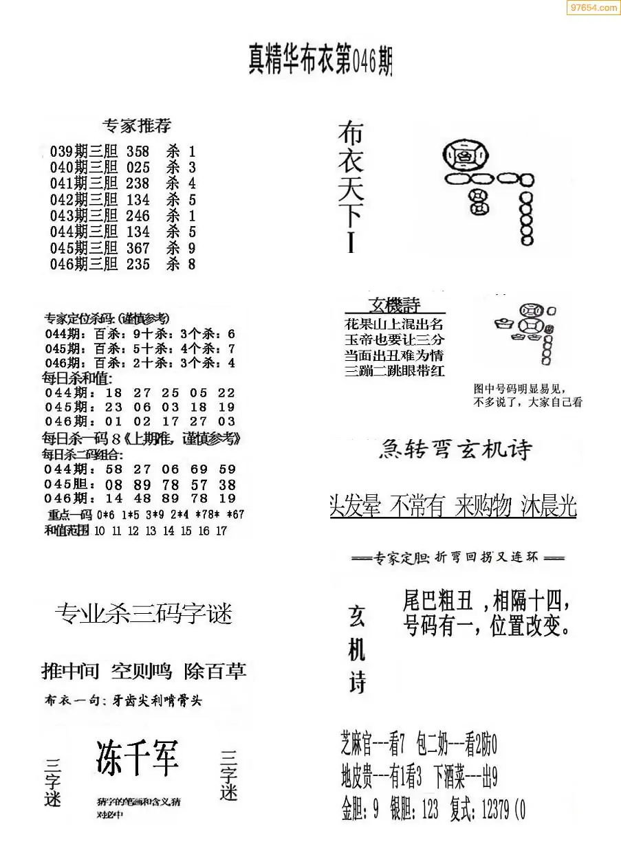 福彩046期3d真精华布衣+布衣早报(转载)