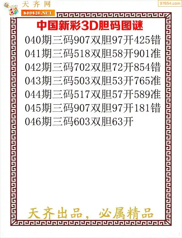 天齐网3d26年046期胆码图 胆:67