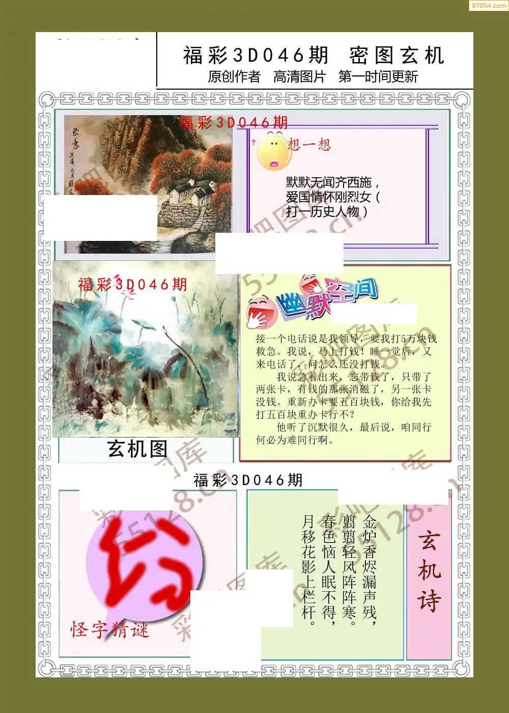(4)26年046期本站原创总汇全图_福彩图谜字谜总汇大全