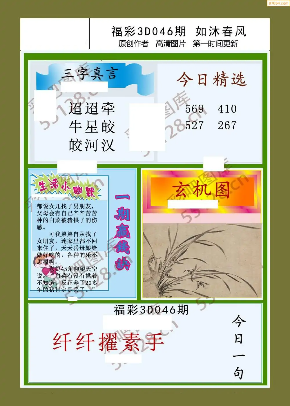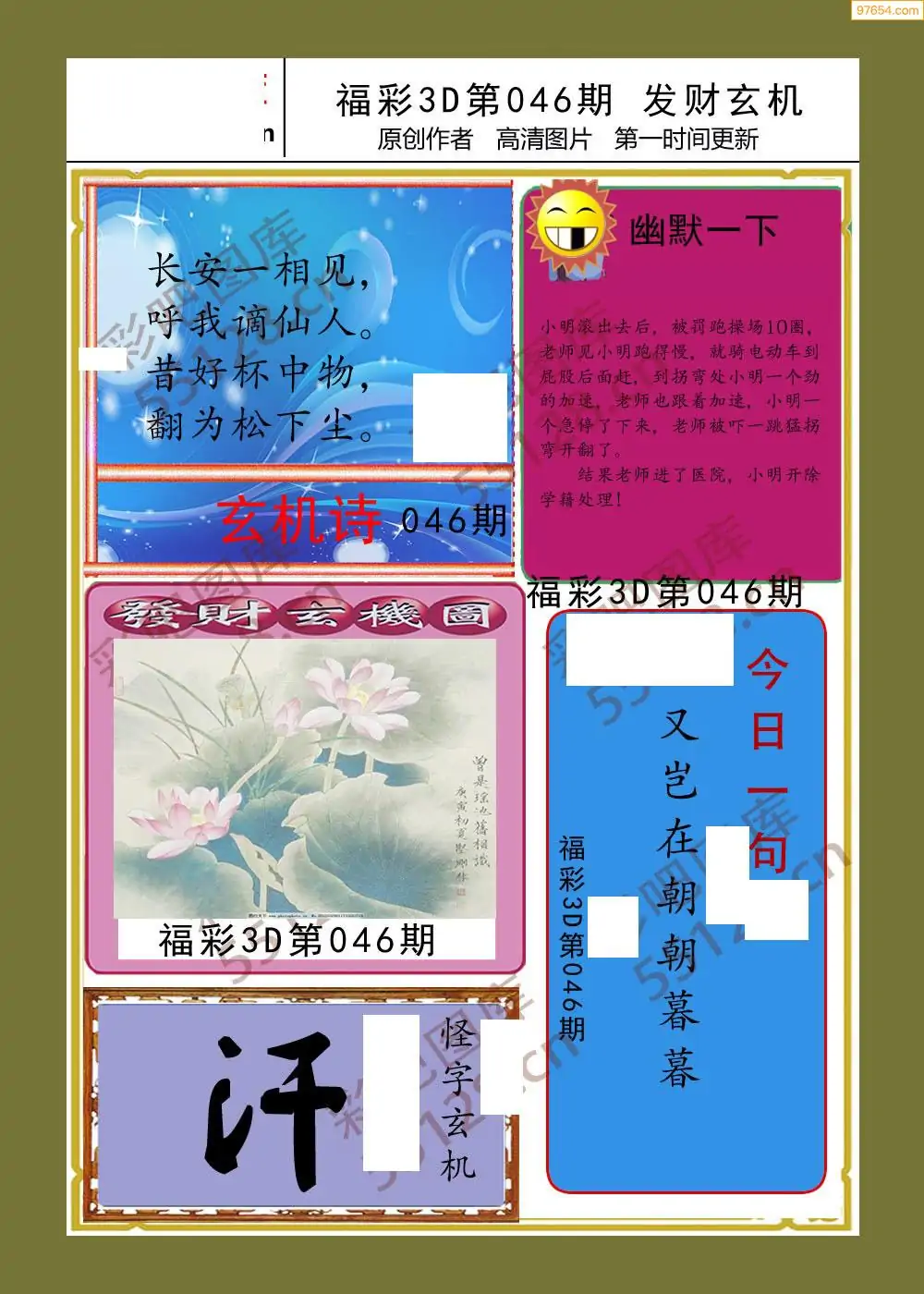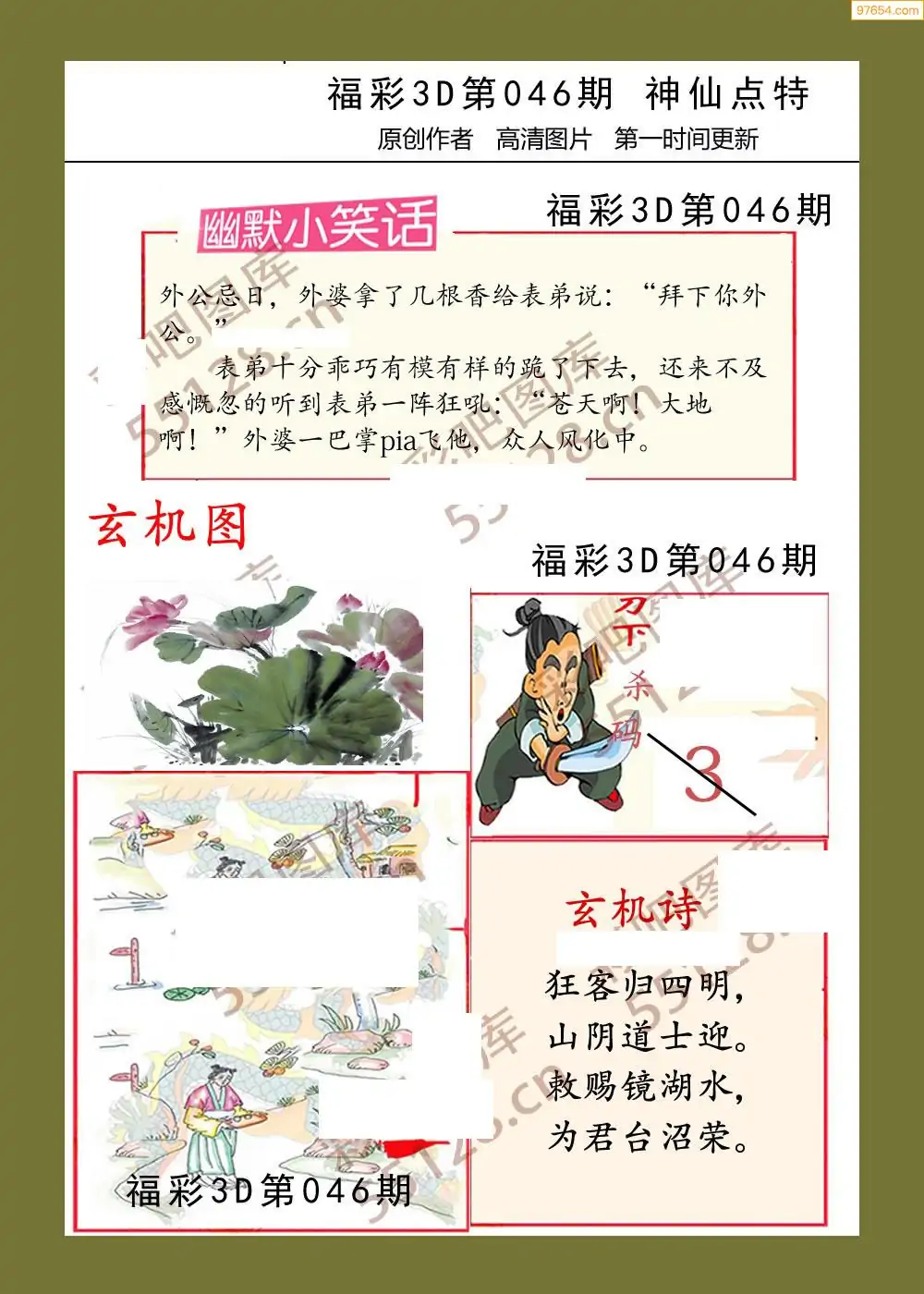 (3)2026046期3D预测总汇全图_福彩3d图谜字谜总汇