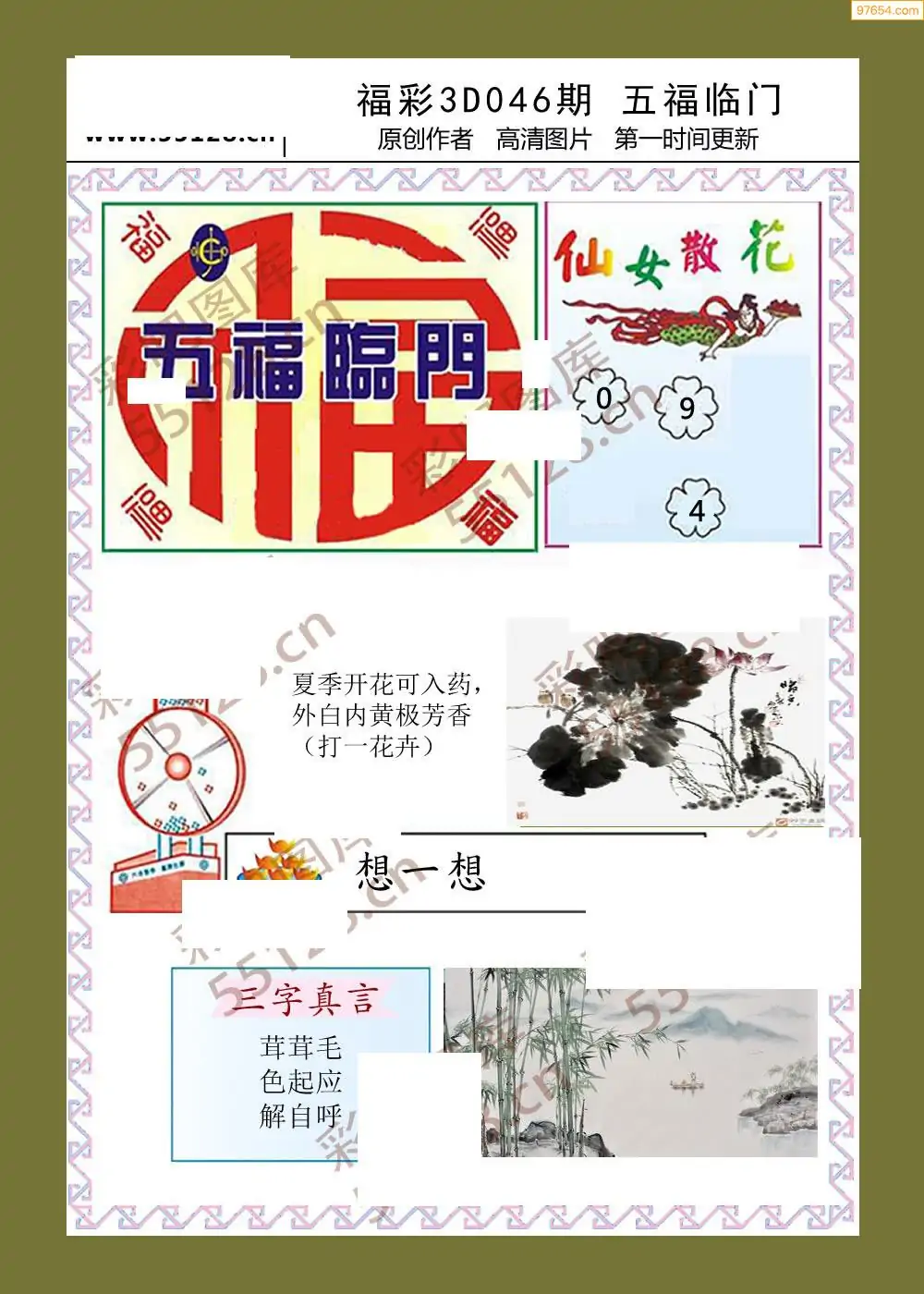 (5)26年046期福彩字谜图谜总汇