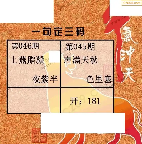 046期97654本站收集胆码出号预测