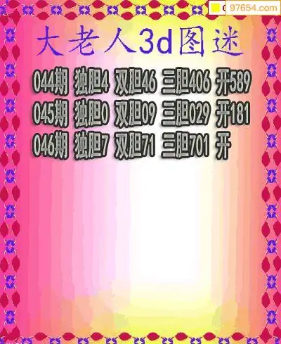 2026046期彩彩网3d原创图迷搜集(天中整理)