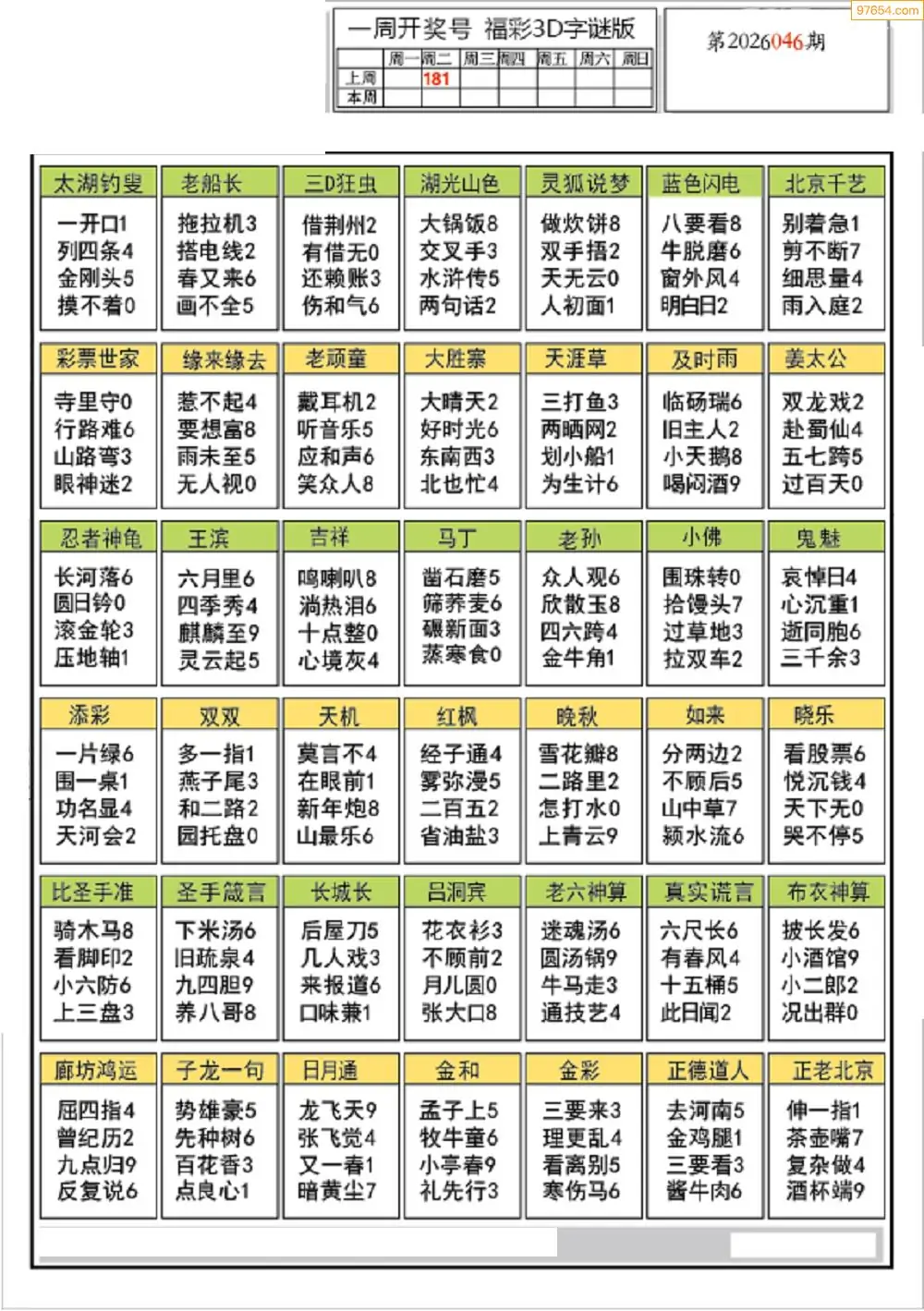 26年046期3d选号彩报图谜画谜