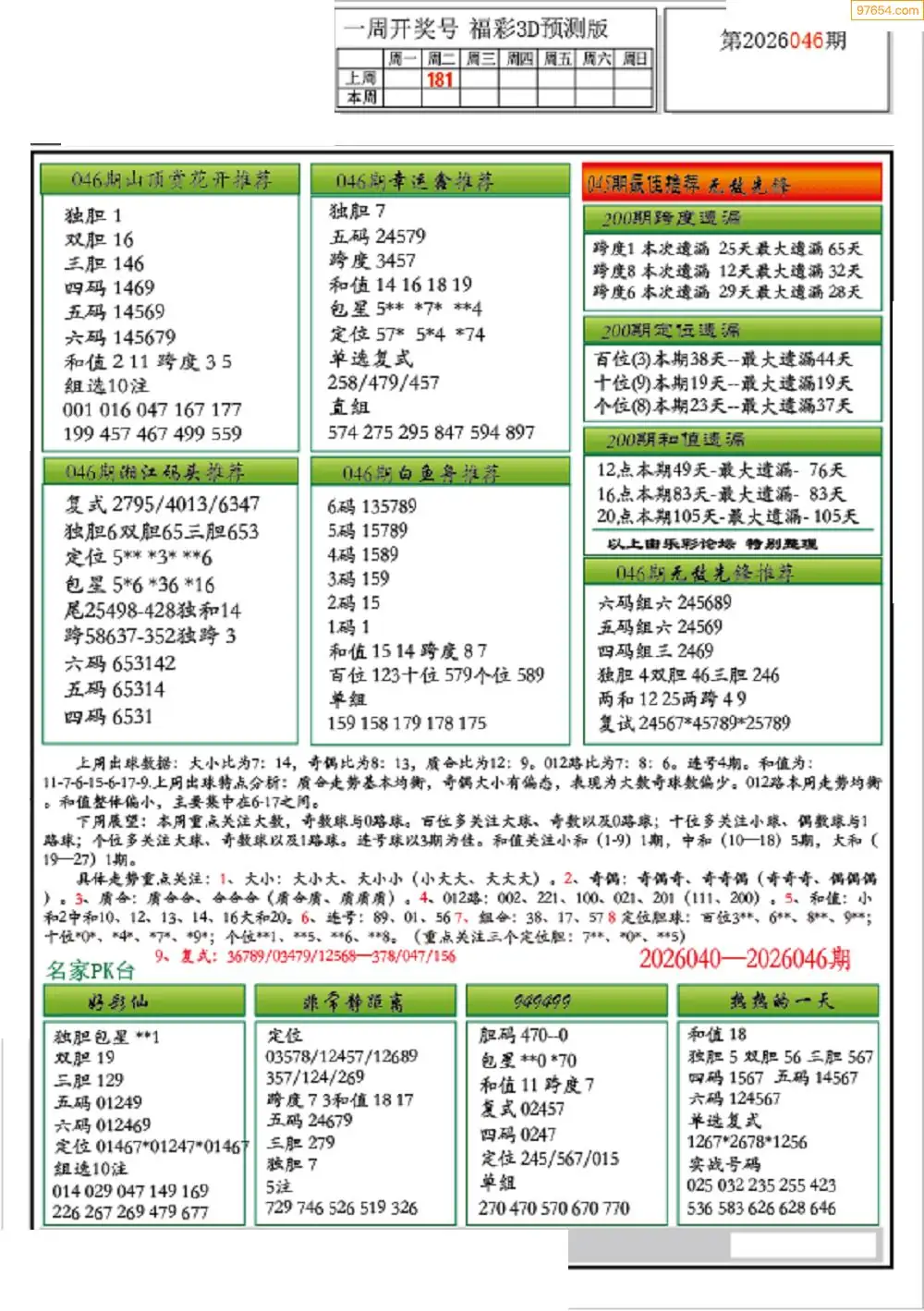 26年046期3D各板块资料整合汇总