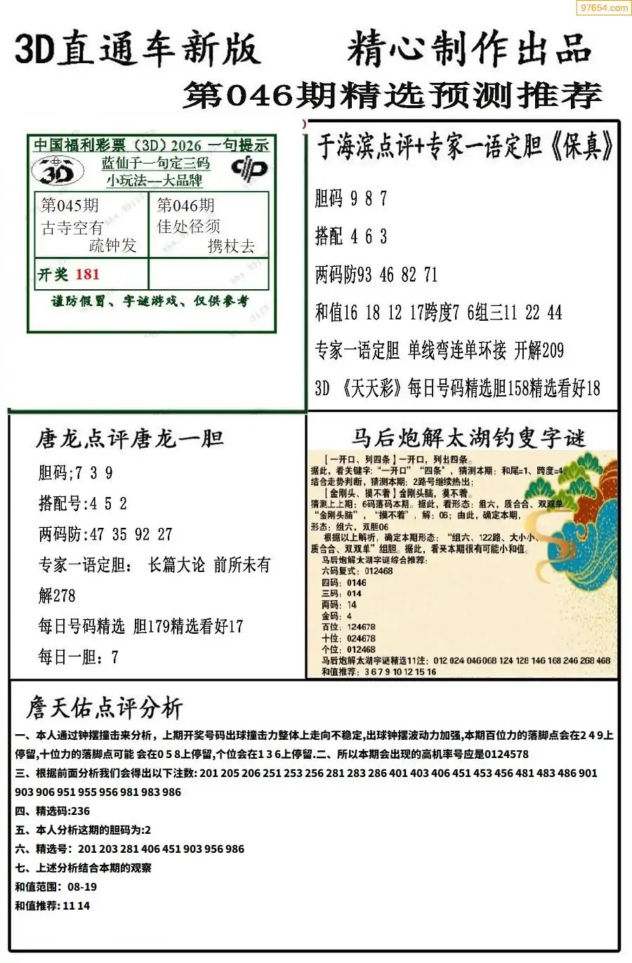 26年046期3D各板块资料整合汇总