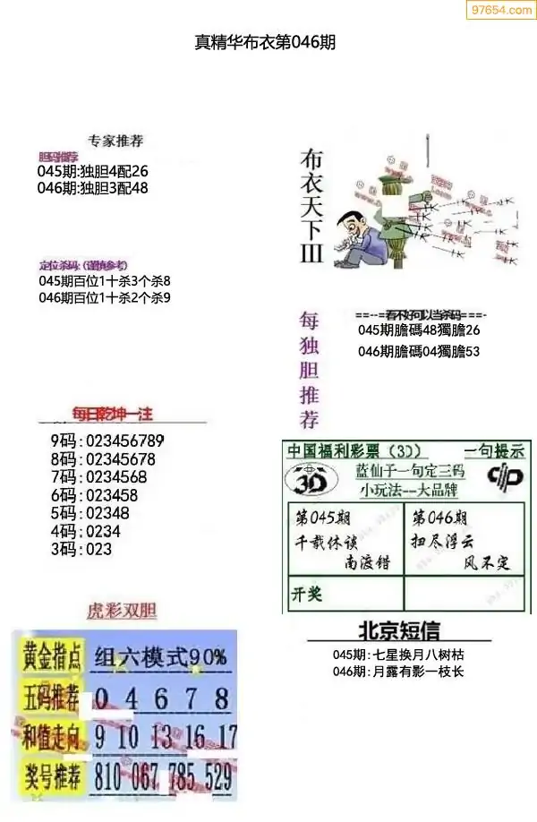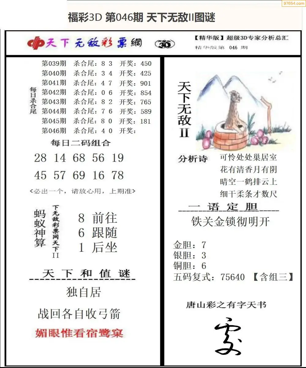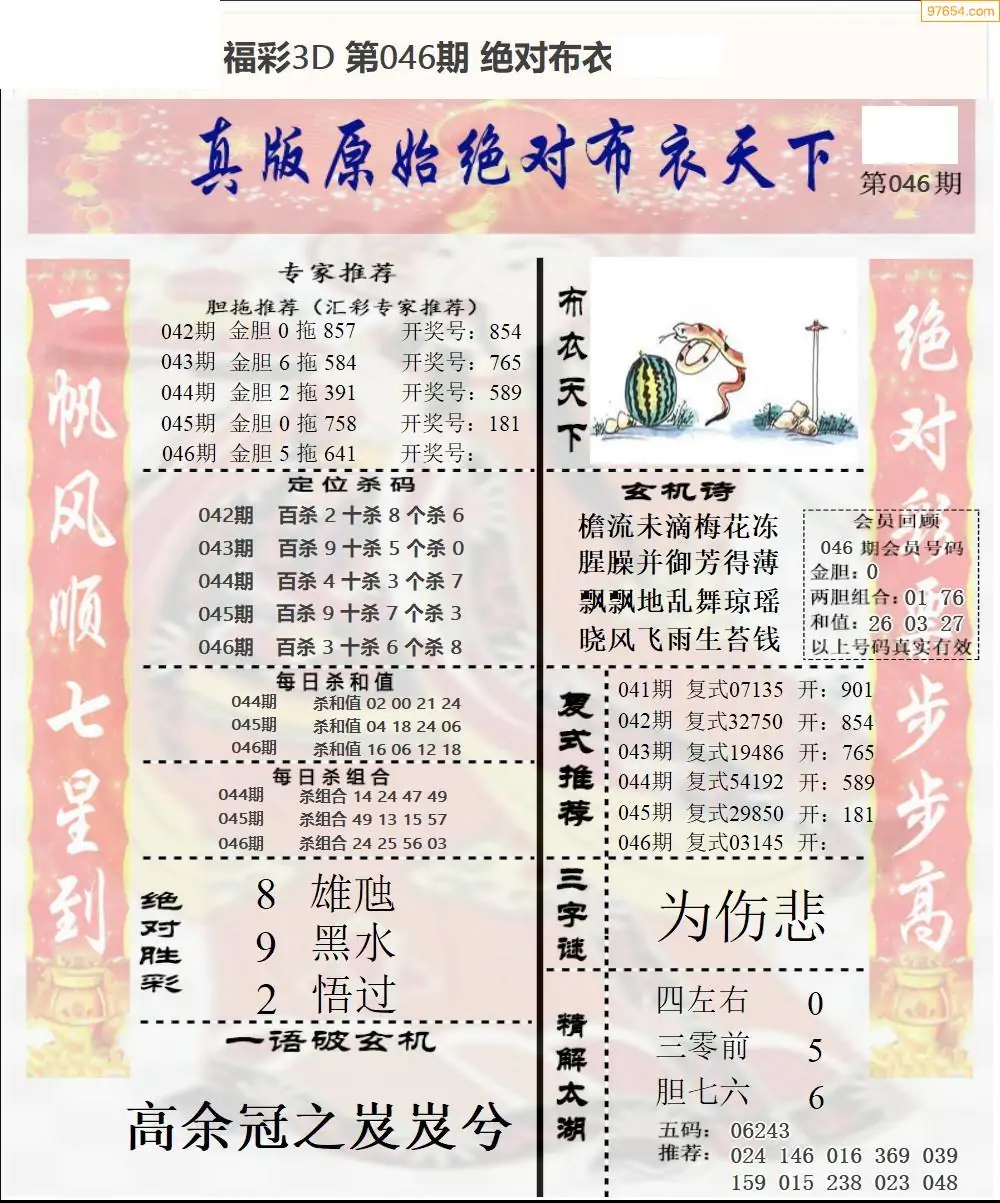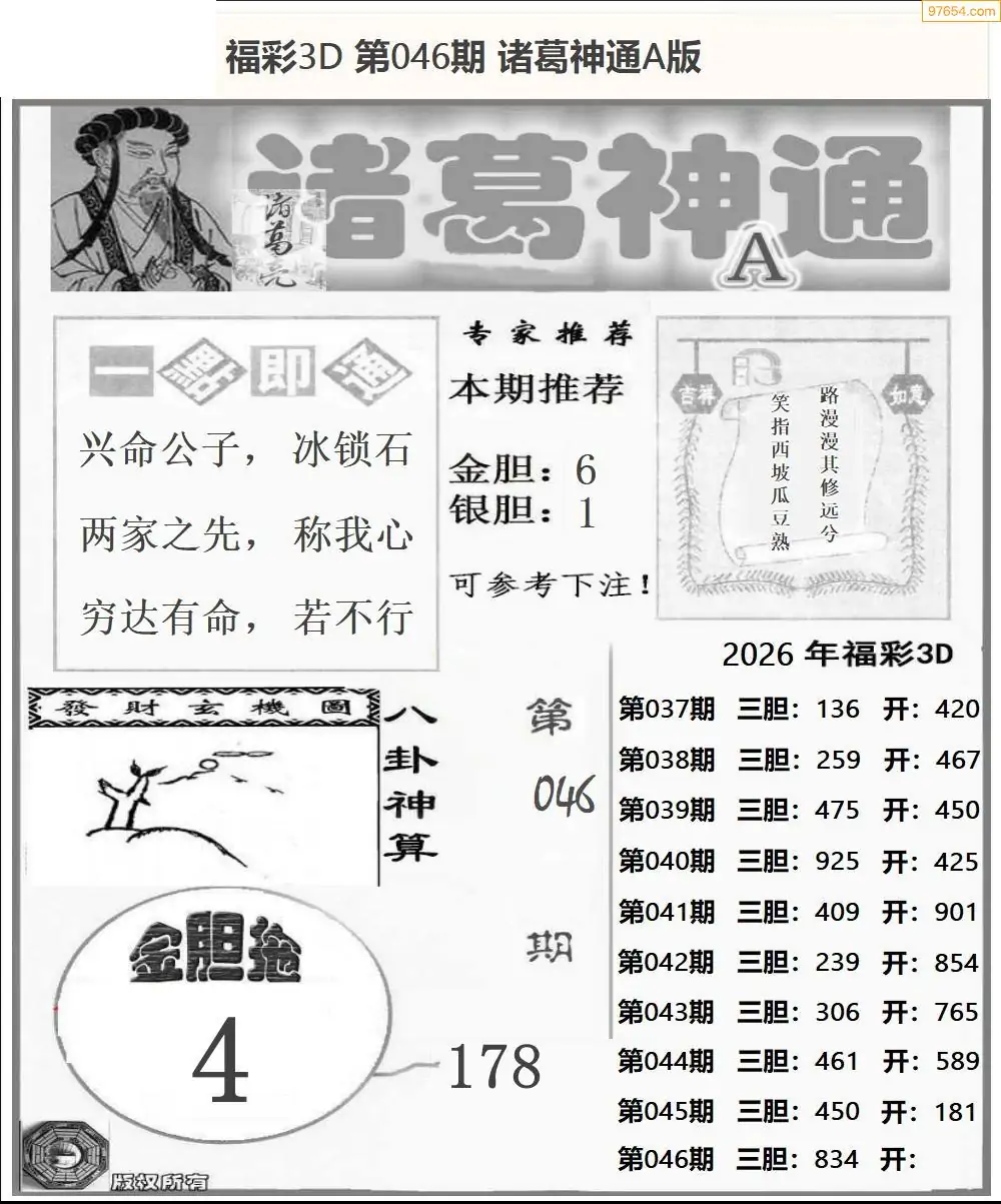 (2)26年046期本期3d图迷汇总_福彩3D图谜总汇图