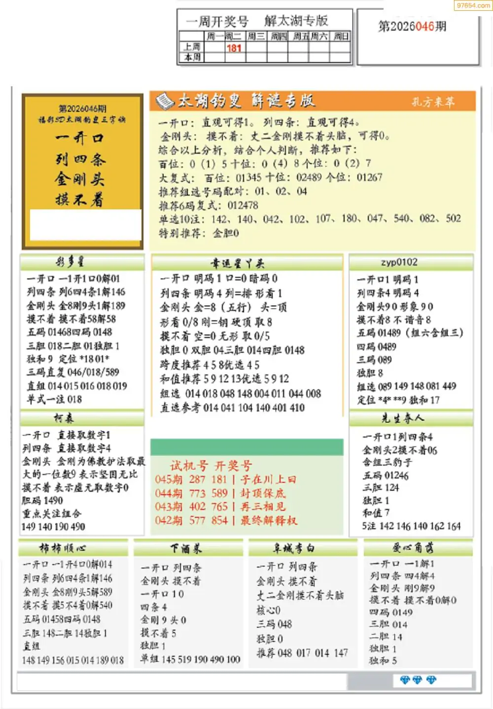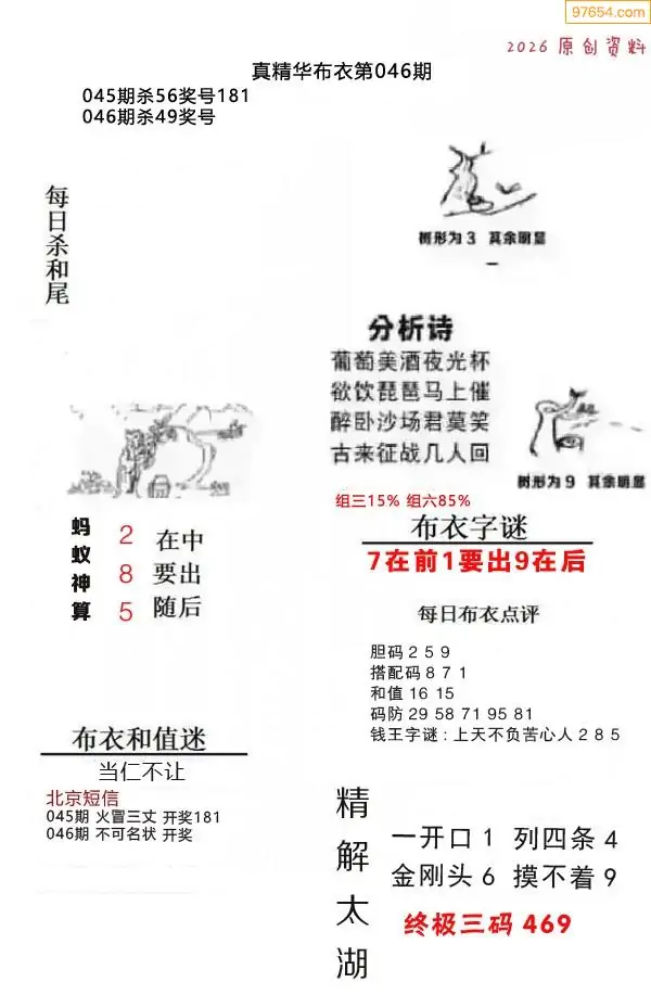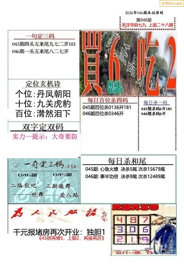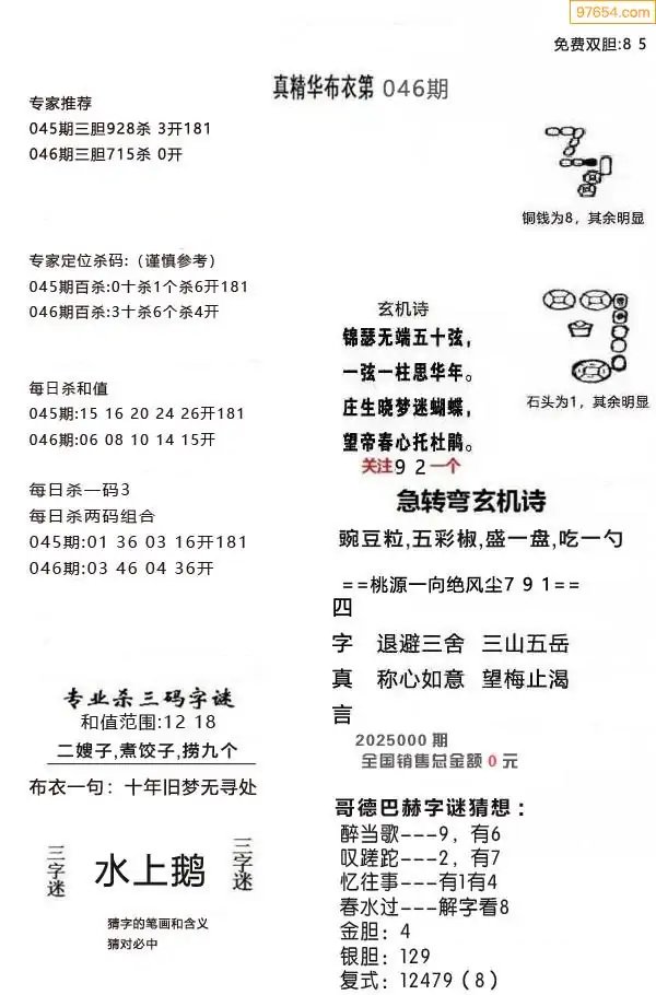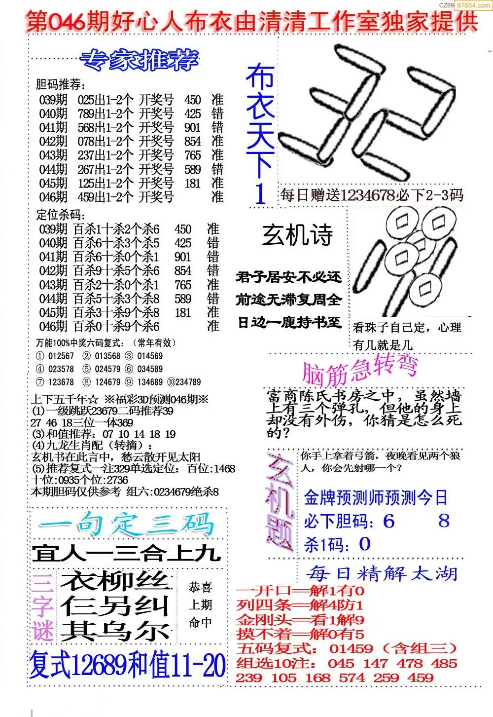 (2)26年046期本期3d图迷汇总_福彩3D图谜总汇图