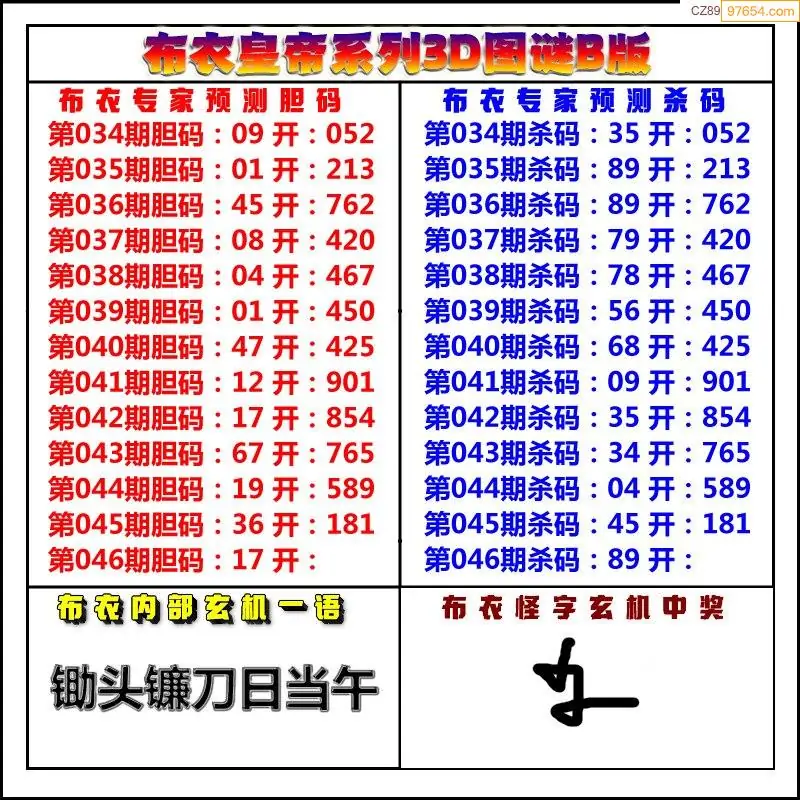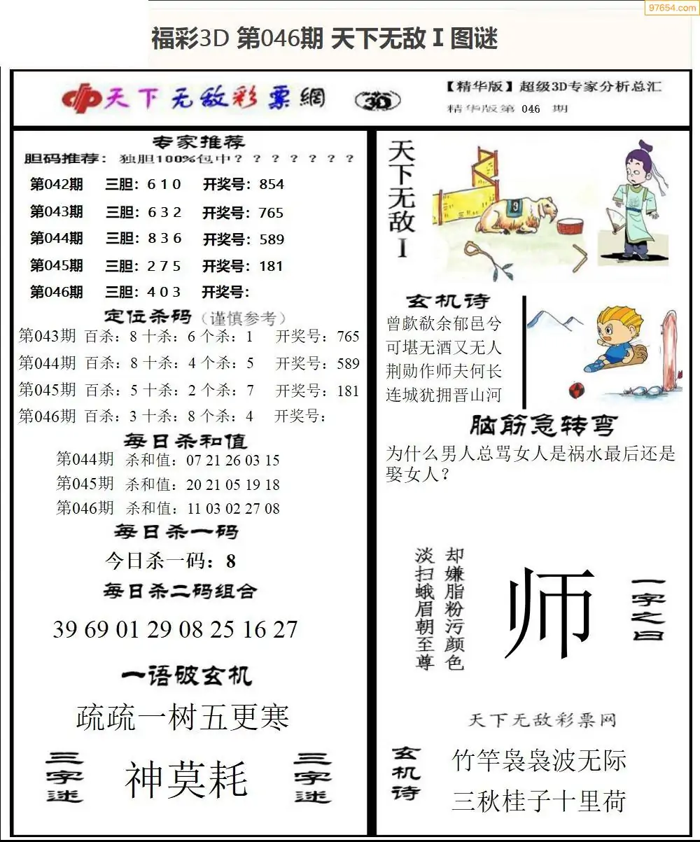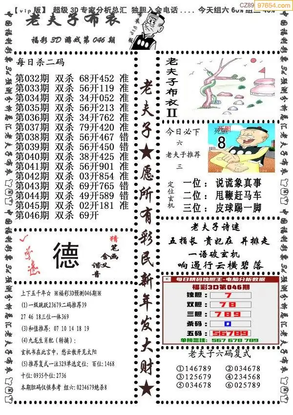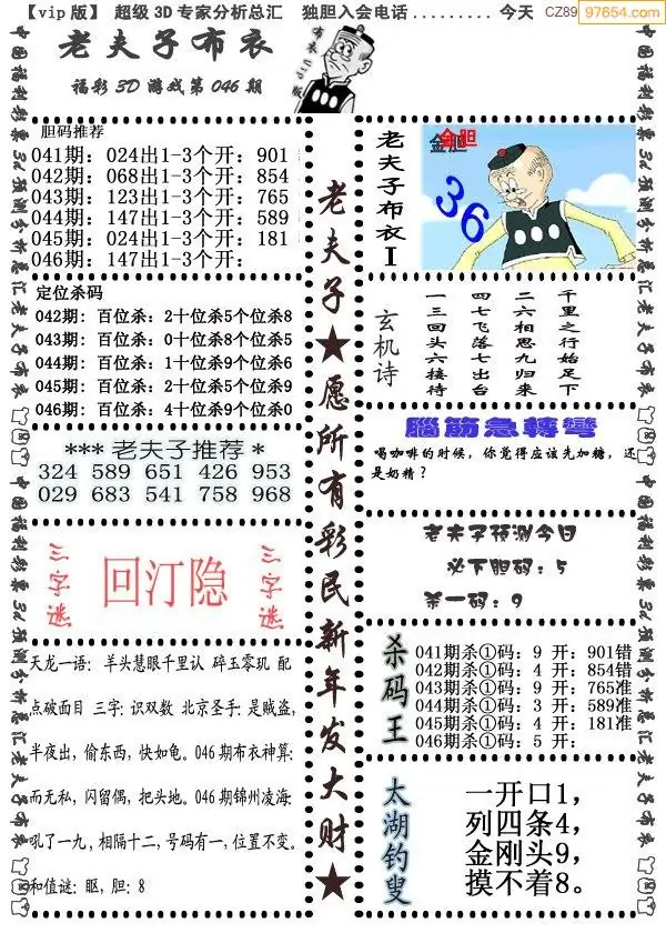 (3)2026046期3D预测总汇全图_福彩3d图谜字谜总汇