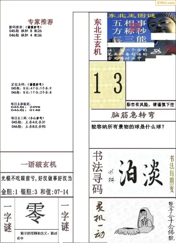 (3)2026045期3D预测总汇全图_福彩3d图谜字谜总汇