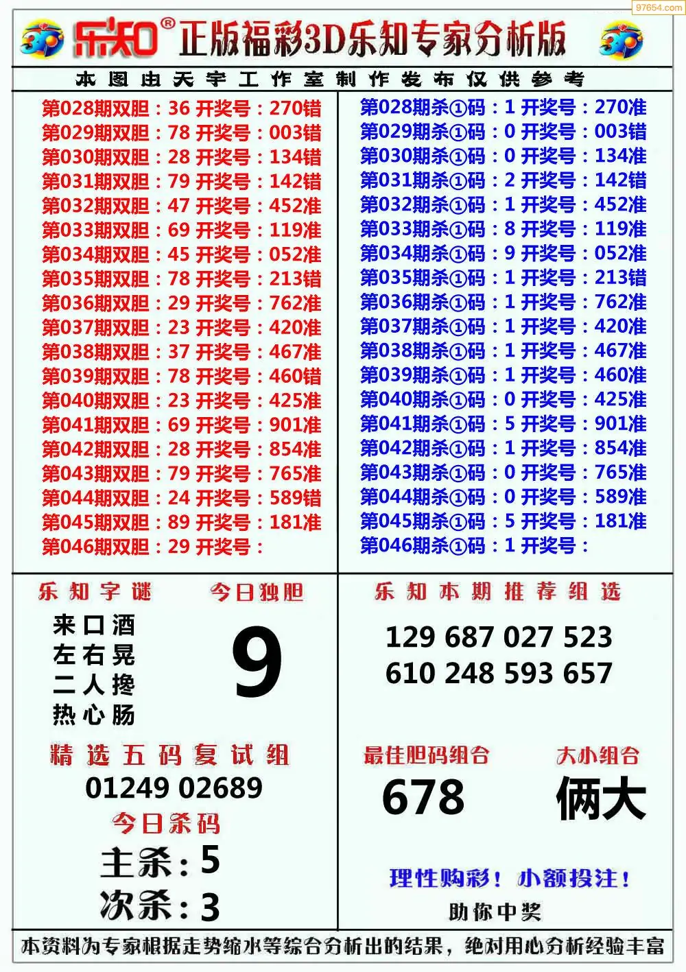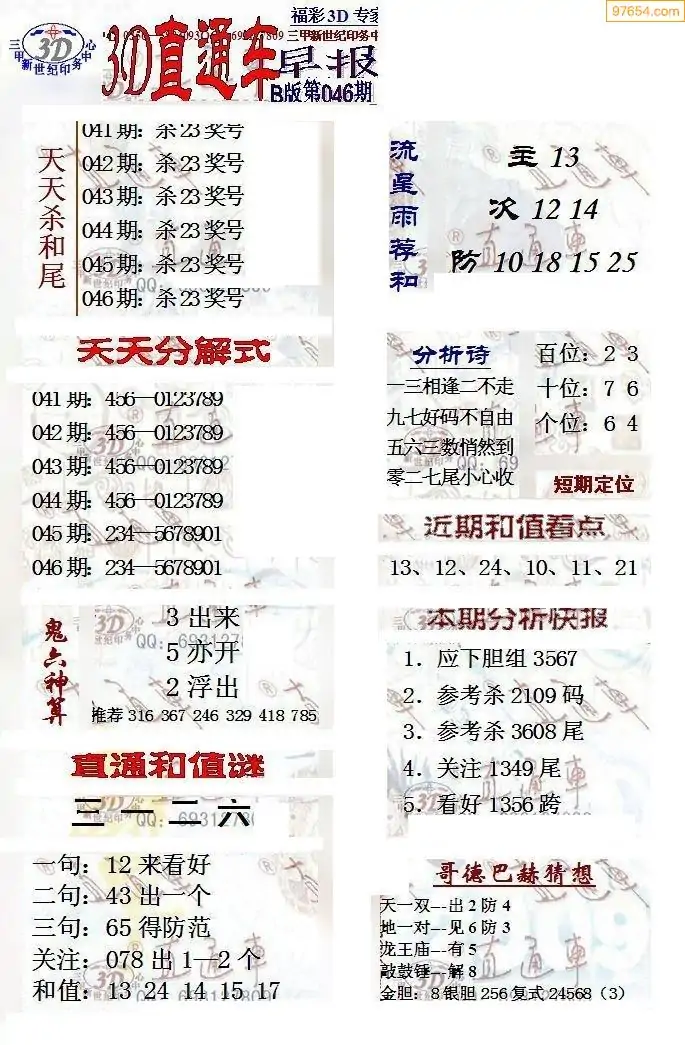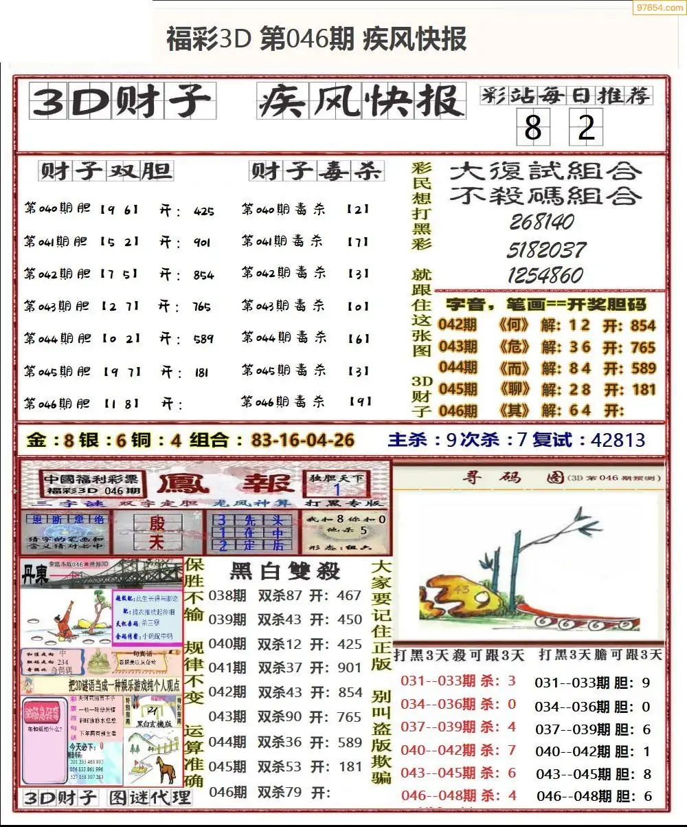 (8)26年046期今日3d各类彩报汇总
