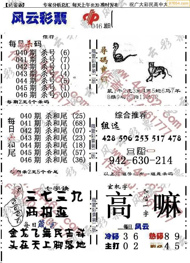 (9)26年046期当期全站杀号定胆图