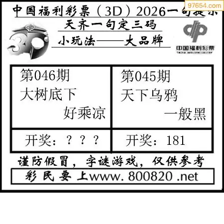 (2)26年046期本期3d图迷汇总_福彩3D图谜总汇图