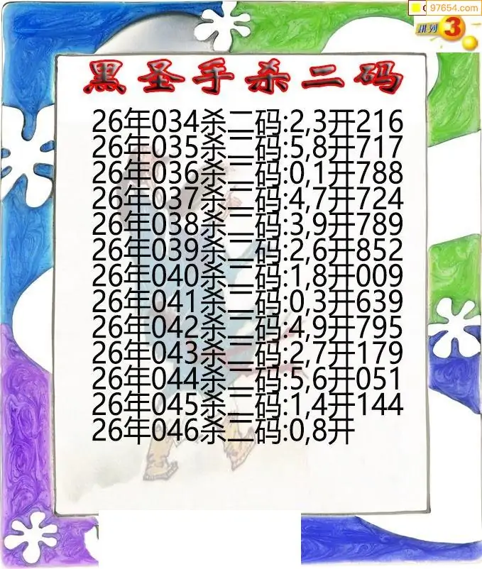 26年046期黑圣手排3杀二码图迷
