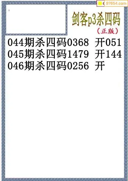 26年046期排三剑客杀码图谜