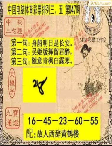 26047期玄机图谜+黄大仙济世图_体彩排列3字谜图谜汇总专辑