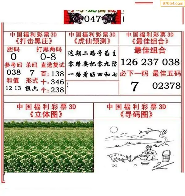 047期3D牛彩预测报+彩吧字谜报