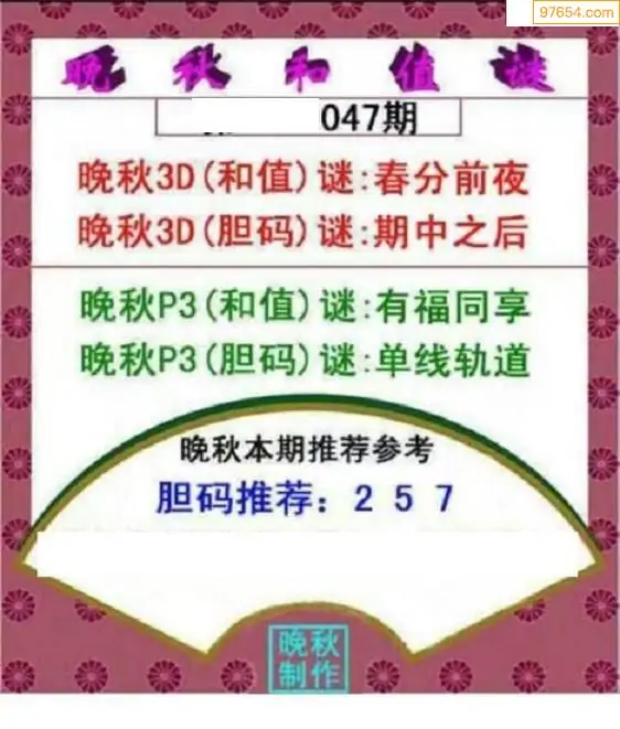 26047期晚秋和值谜胆码推荐