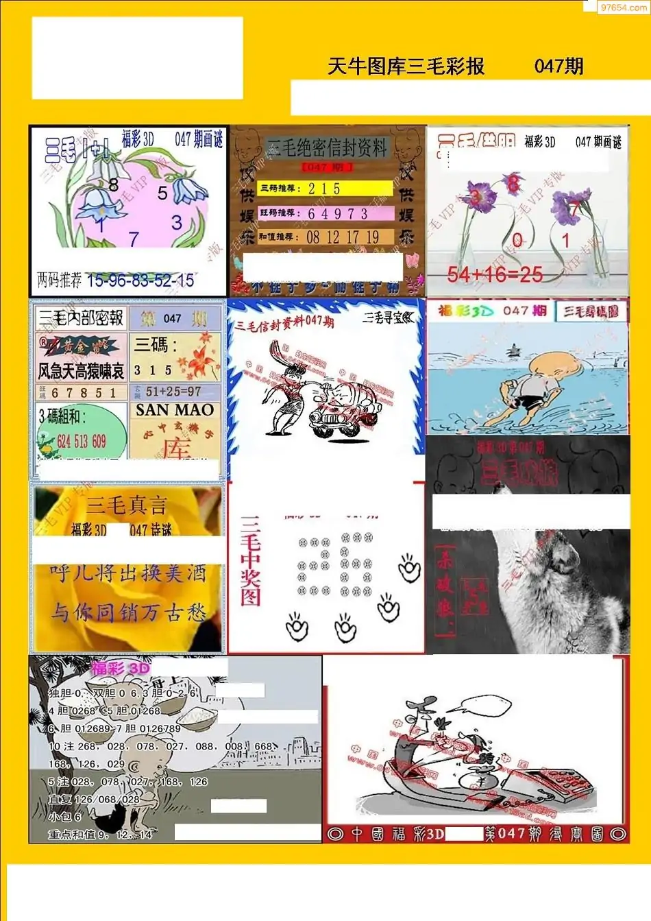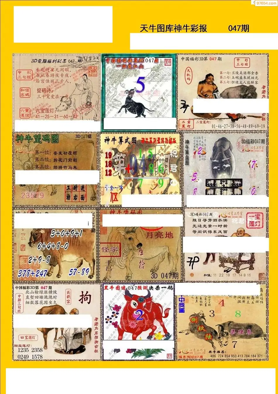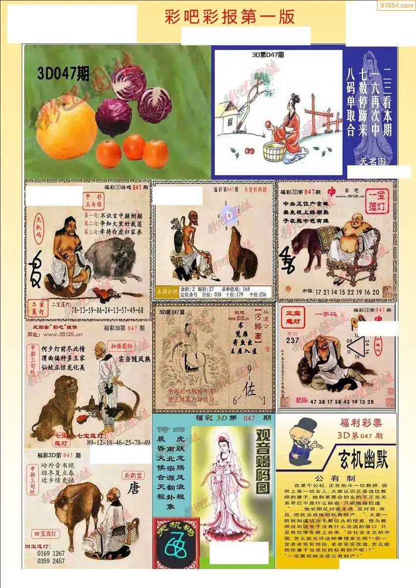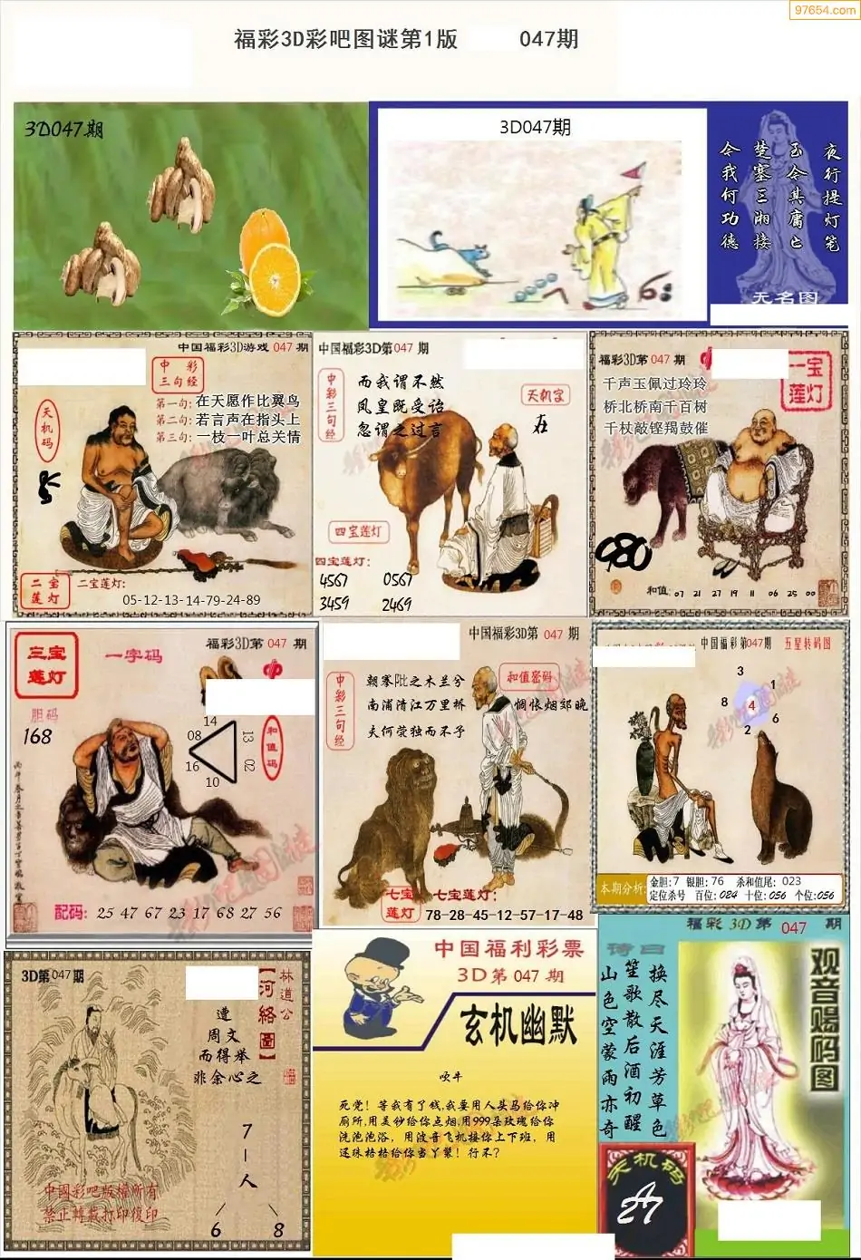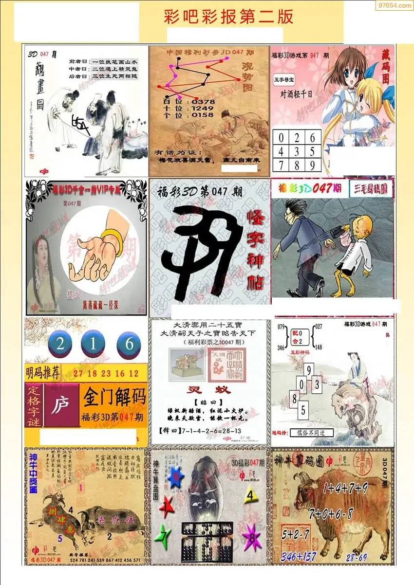 047期3D牛彩预测报+彩吧字谜报