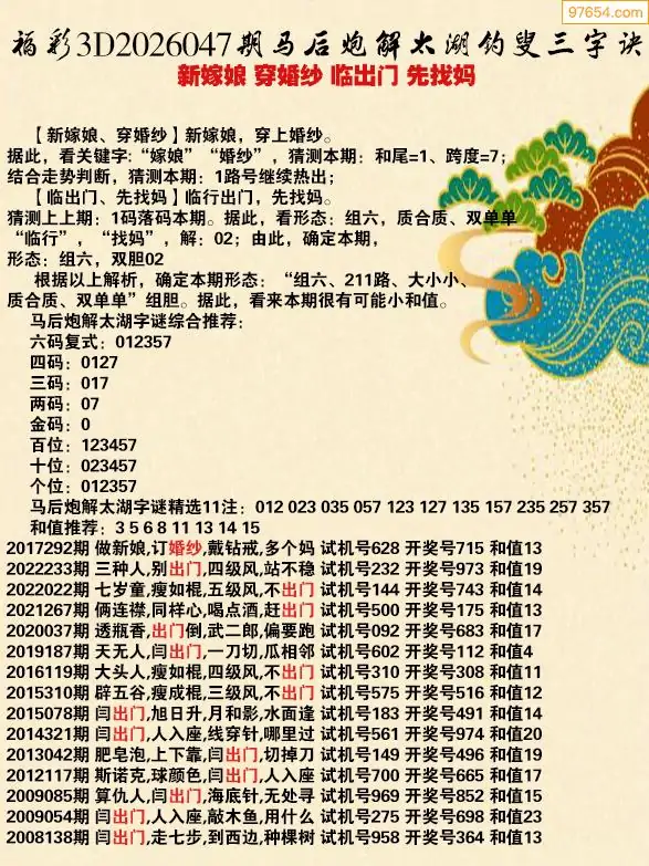 26047期福彩3d太湖钓叟三字诀历史汇总