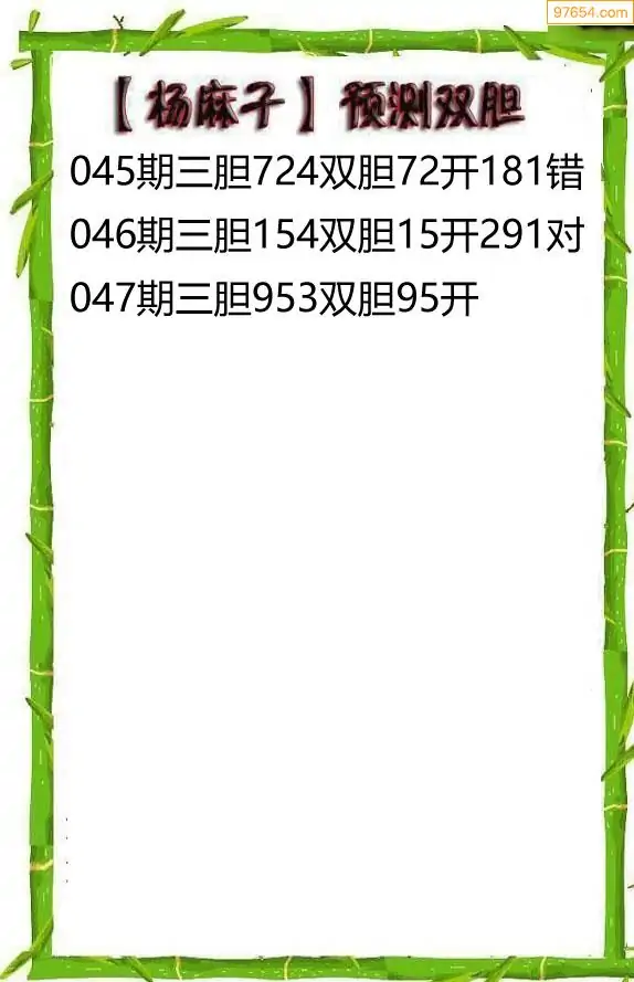 047期97654本站收集胆码出号预测