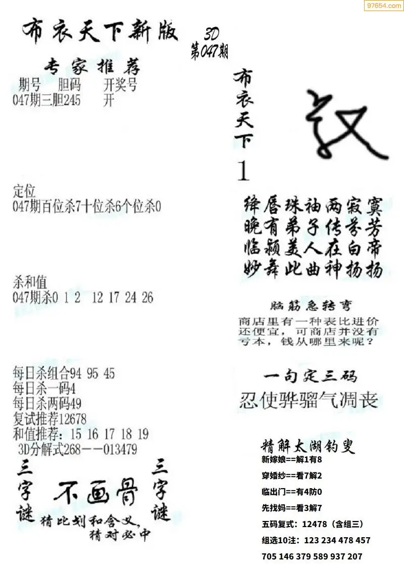 (3)2026047期3D预测总汇全图_福彩3d图谜字谜总汇