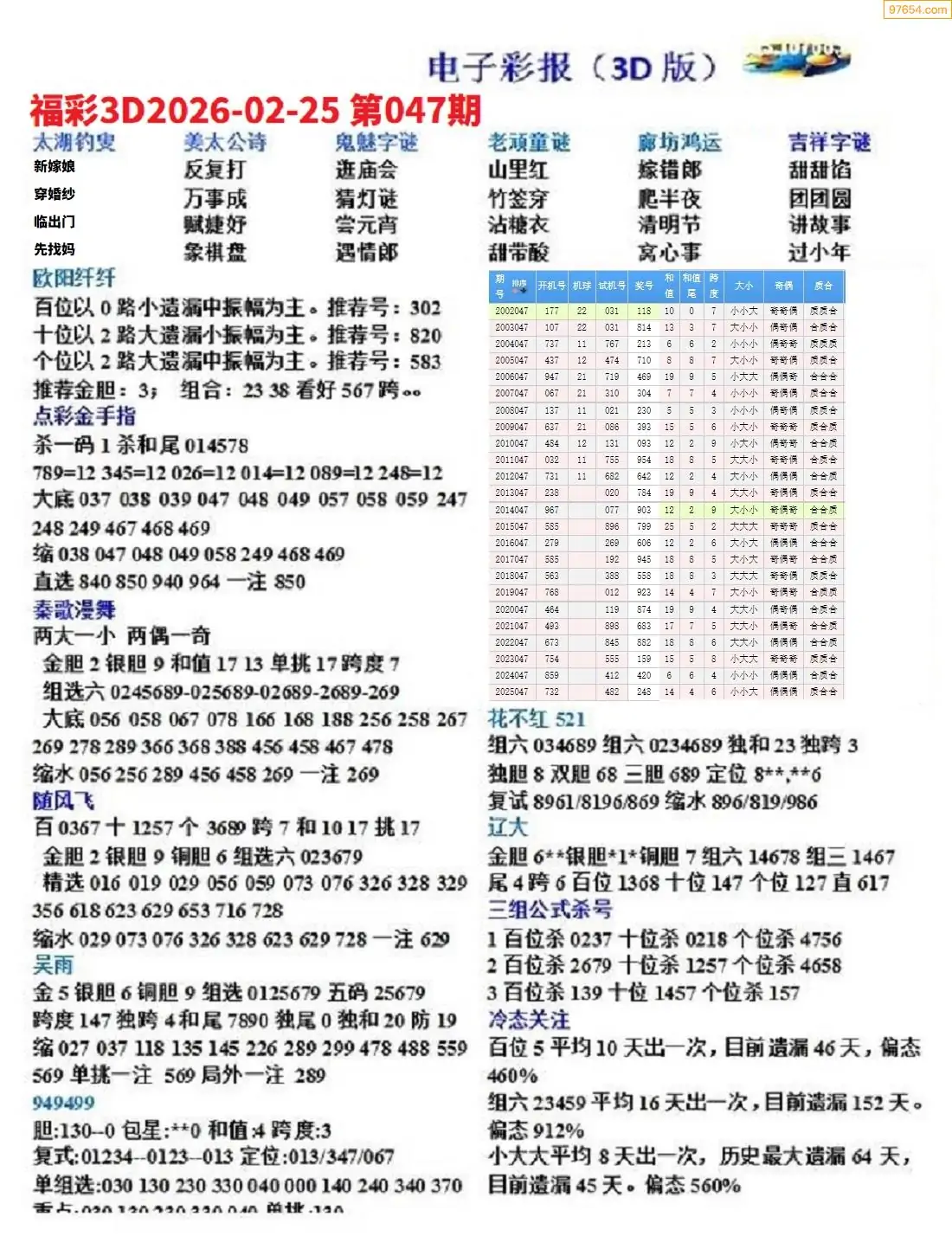 (2)26年047期本期3d图迷汇总_福彩3D图谜总汇图