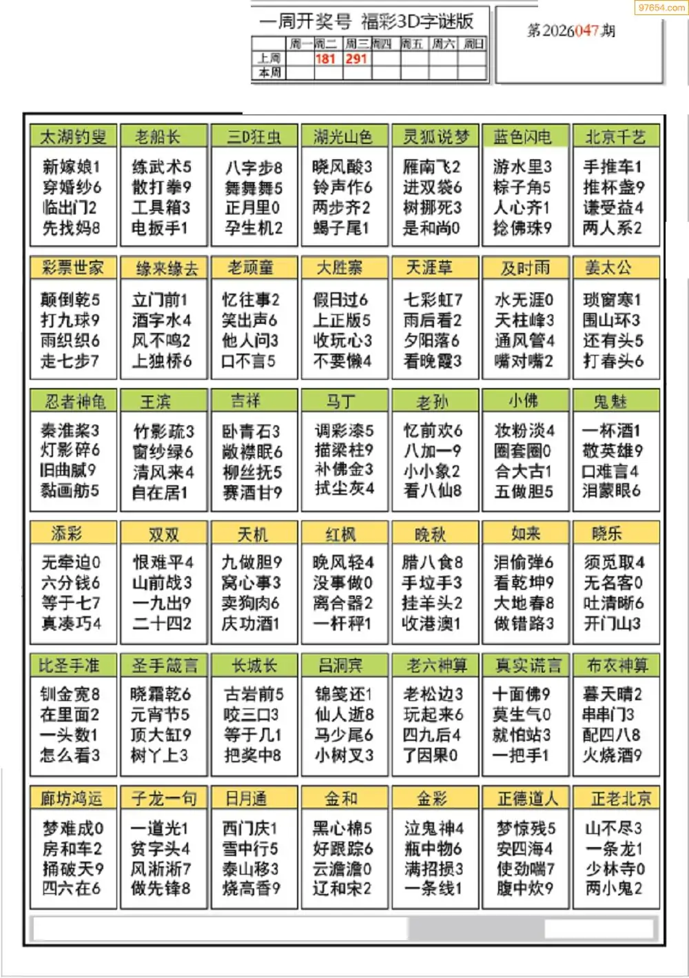 26年047期3d选号彩报图谜画谜