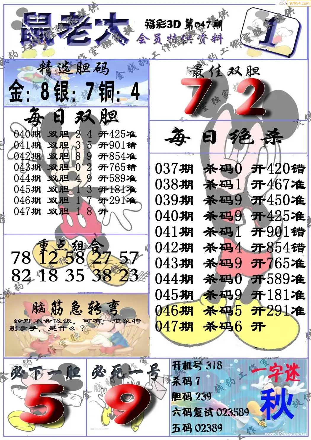 福彩3D047期天牛彩吧套图整合总汇