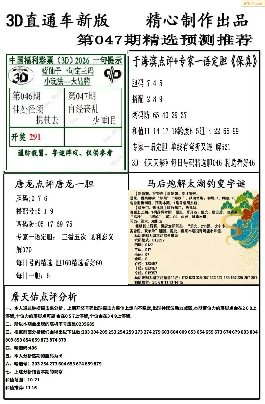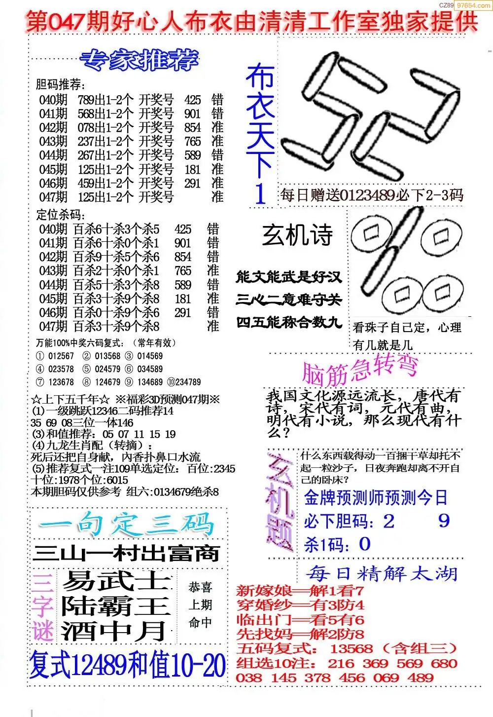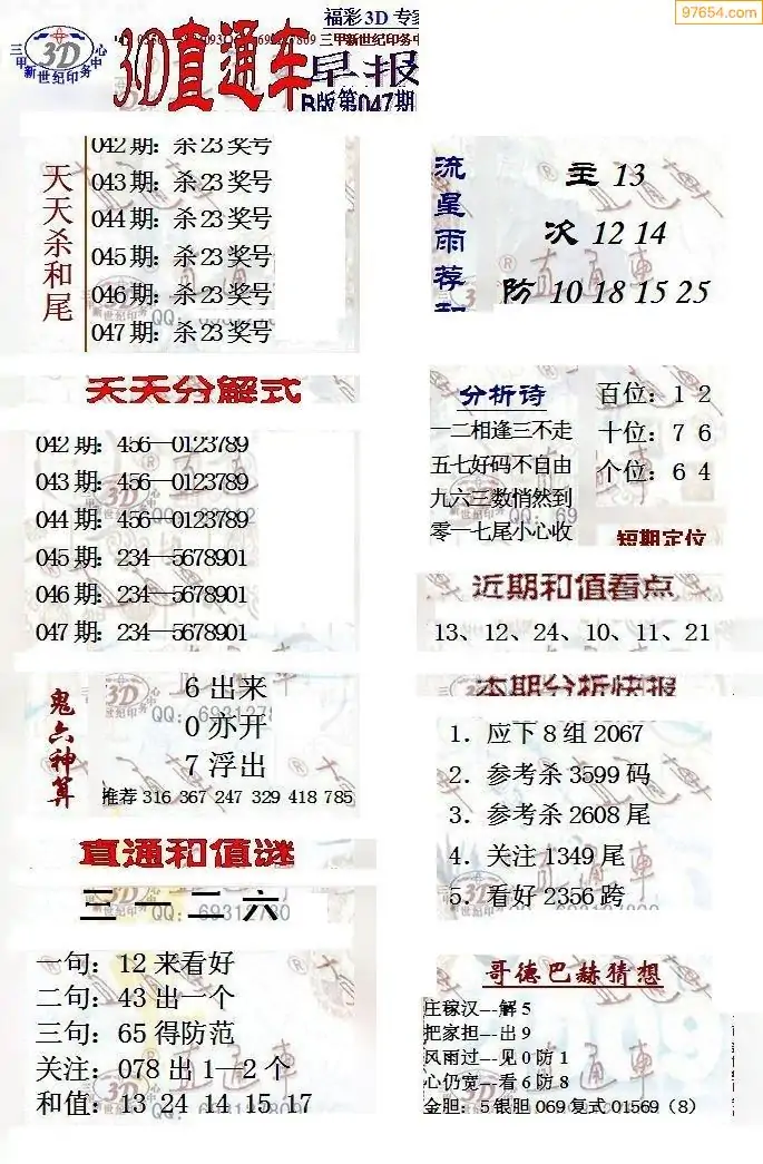 (2)26年047期本期3d图迷汇总_福彩3D图谜总汇图