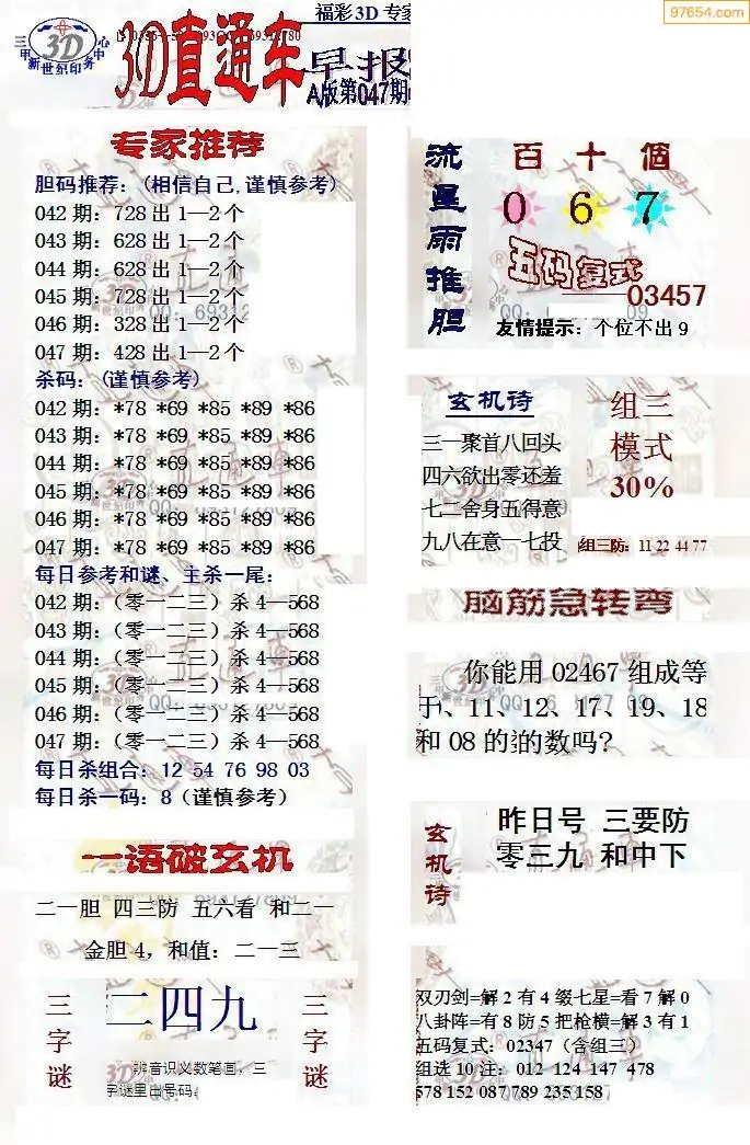 (3)2026047期3D预测总汇全图_福彩3d图谜字谜总汇