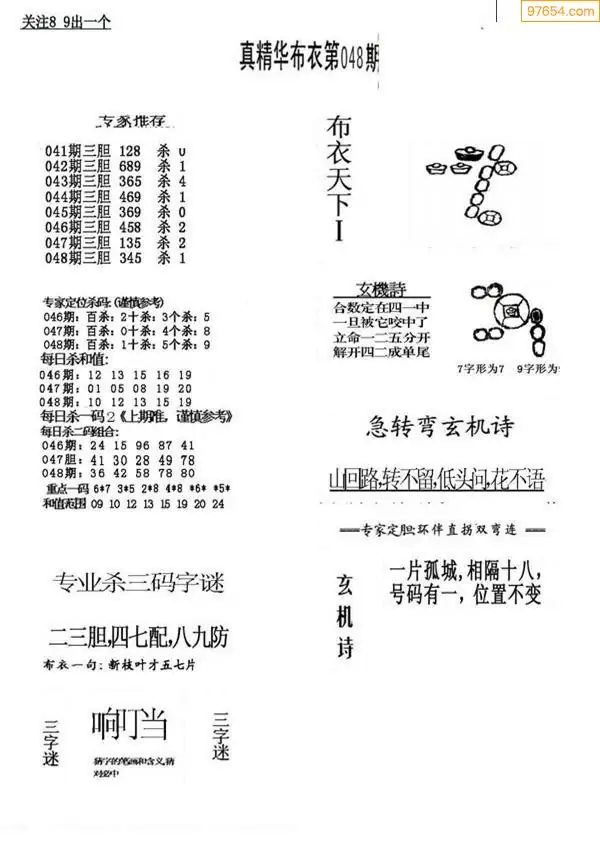 048期真版布衣神算专家推荐