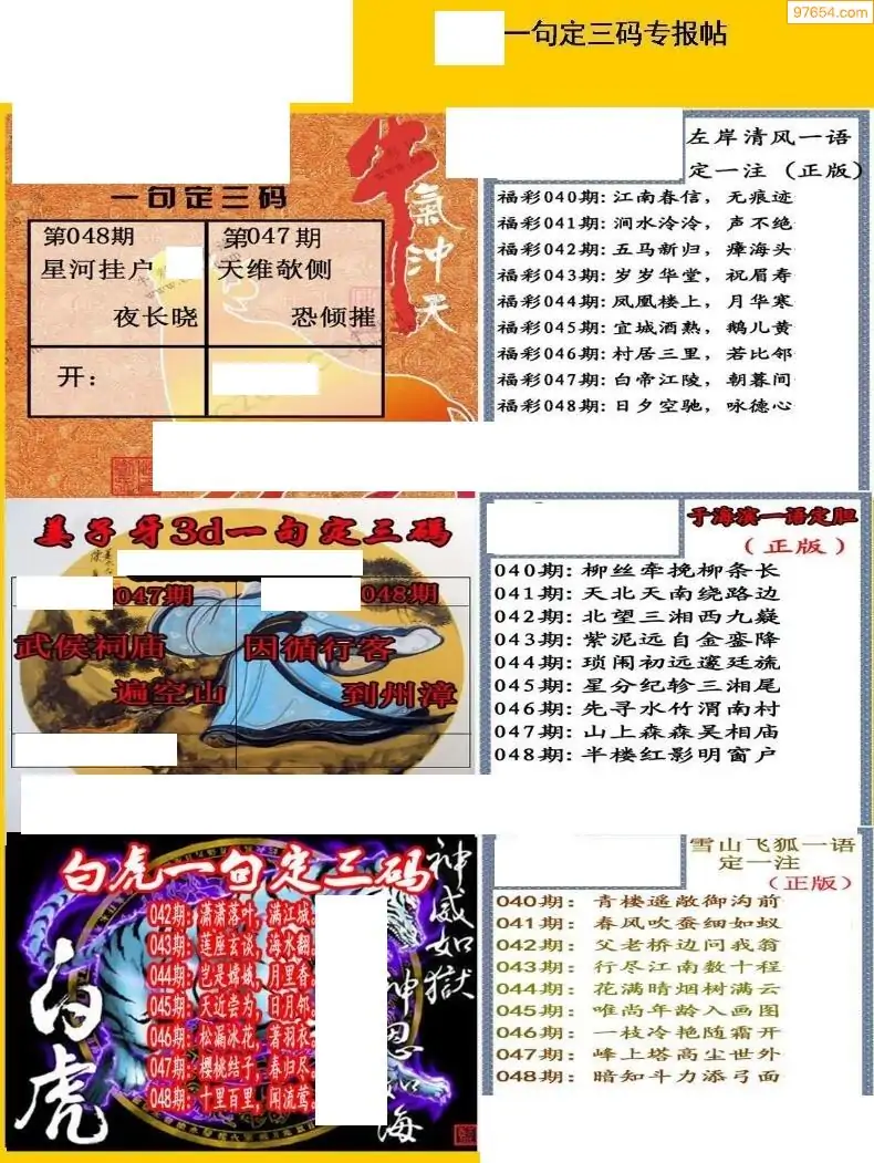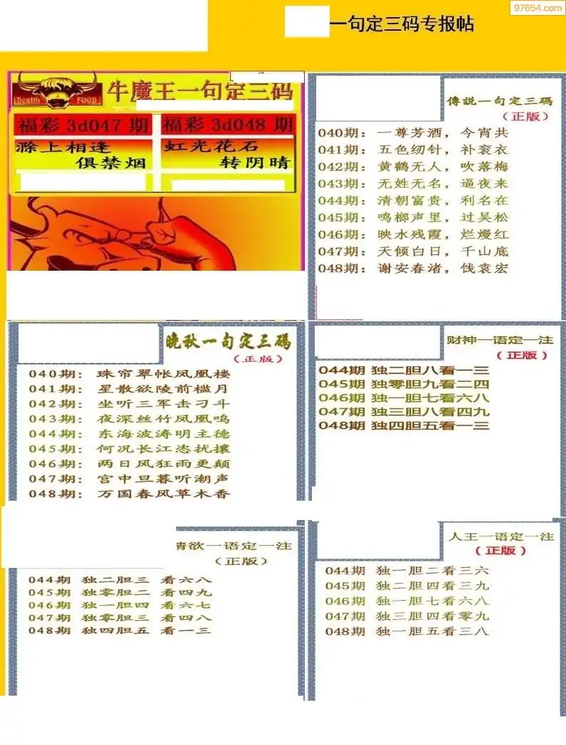 福彩3D048期天牛彩吧套图整合总汇