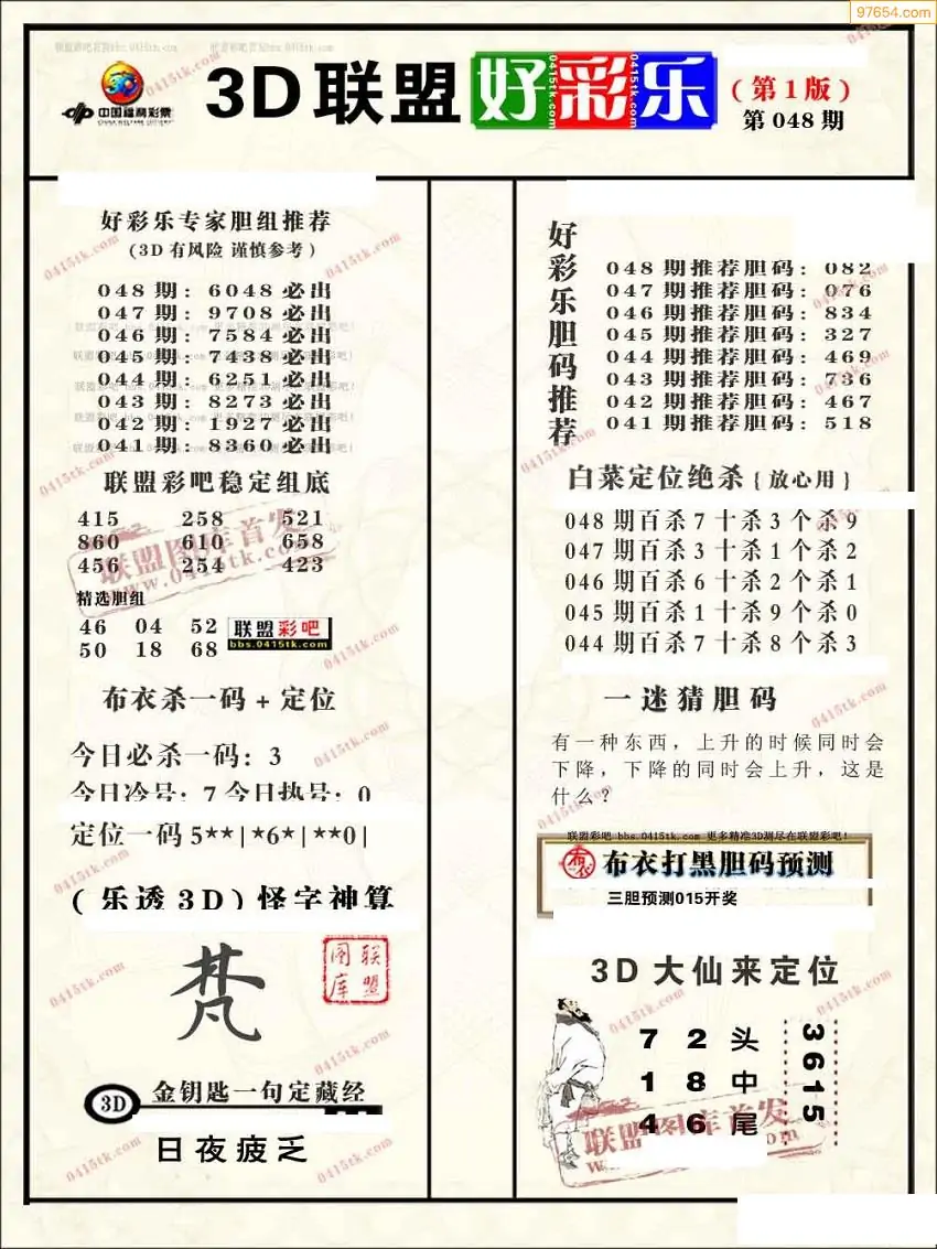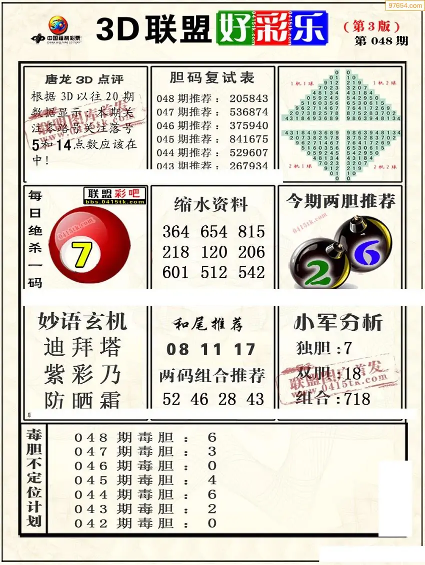 福彩3D048期天牛彩吧套图整合总汇