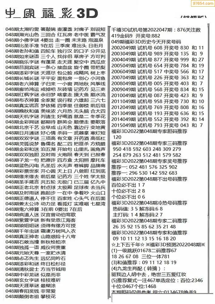 (3)2026048期3D预测总汇全图_福彩3d图谜字谜总汇