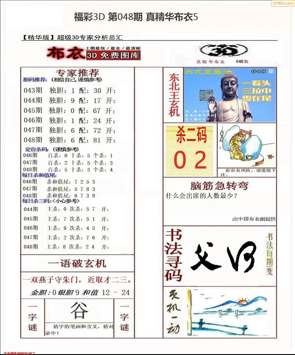 (2)26年048期本期3d图迷汇总_福彩3D图谜总汇图