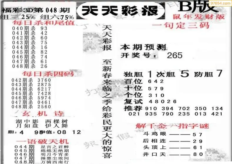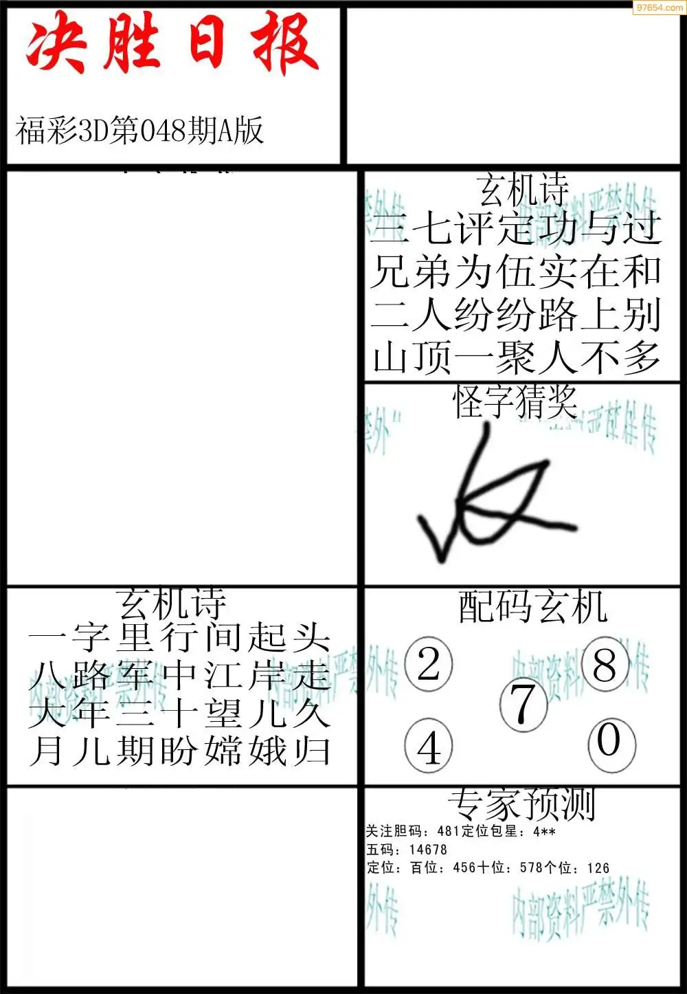 (3)2026048期3D预测总汇全图_福彩3d图谜字谜总汇