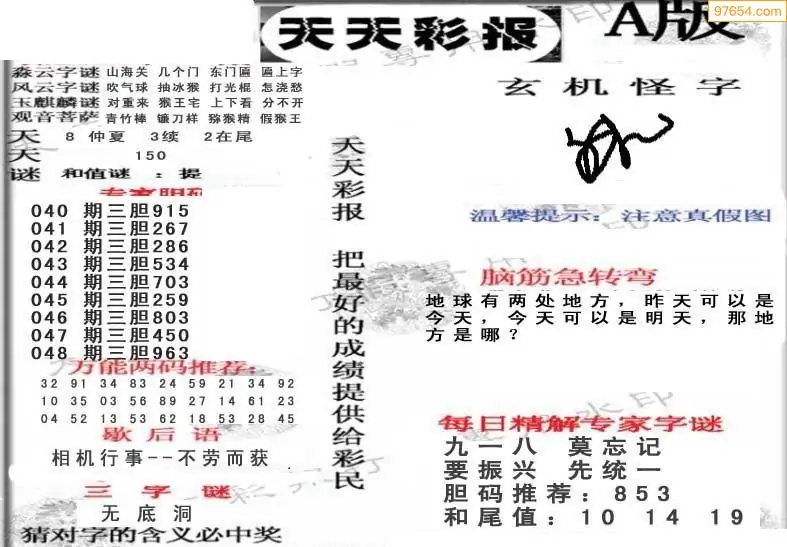 (3)2026047期3D预测总汇全图_福彩3d图谜字谜总汇
