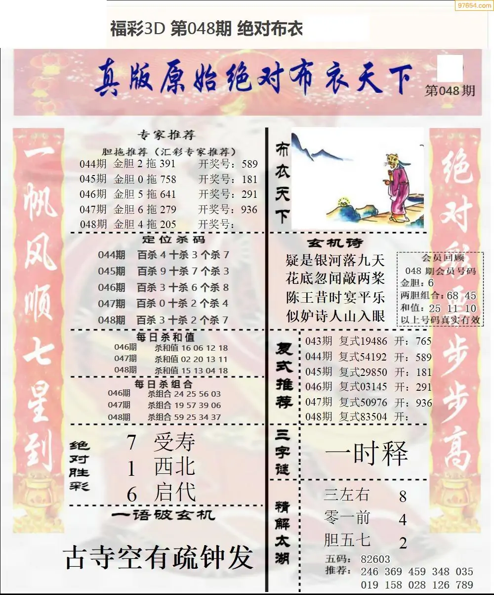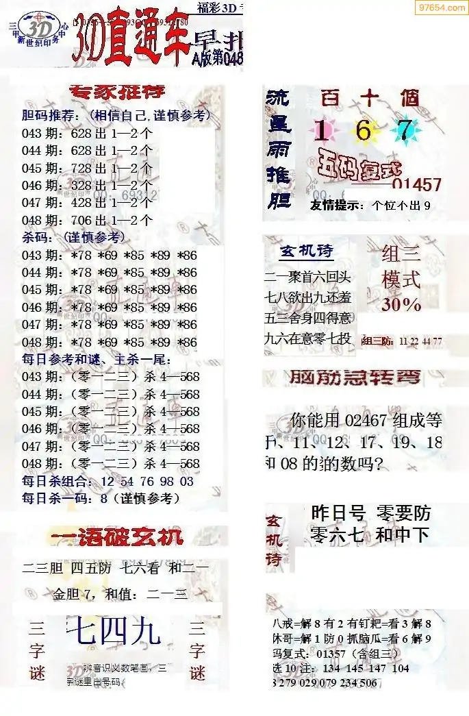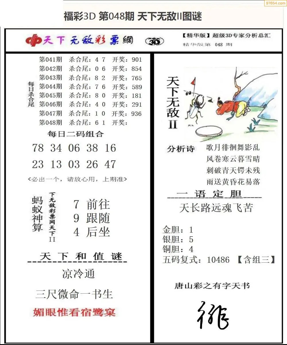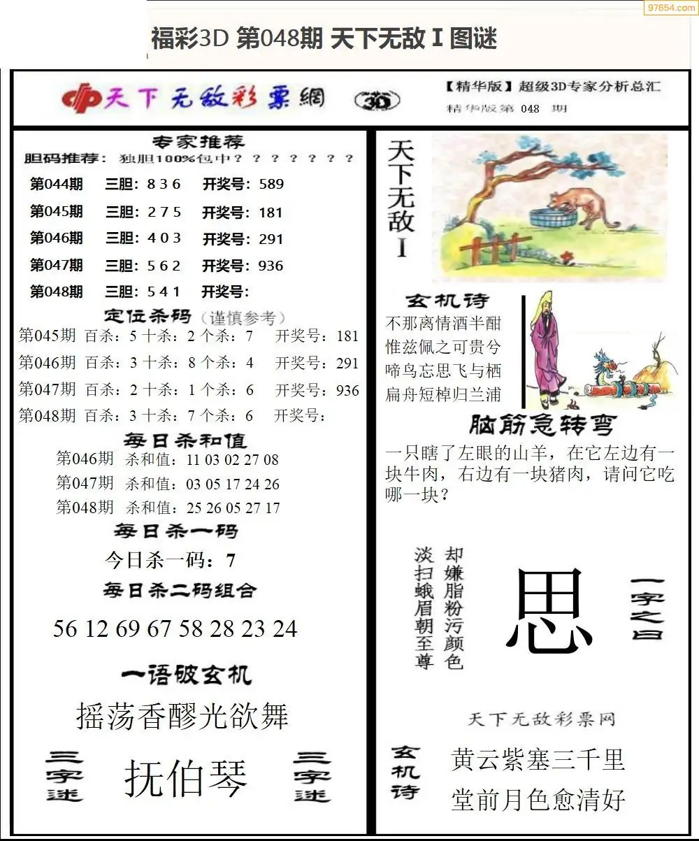 26年048期3d选号彩报图谜画谜