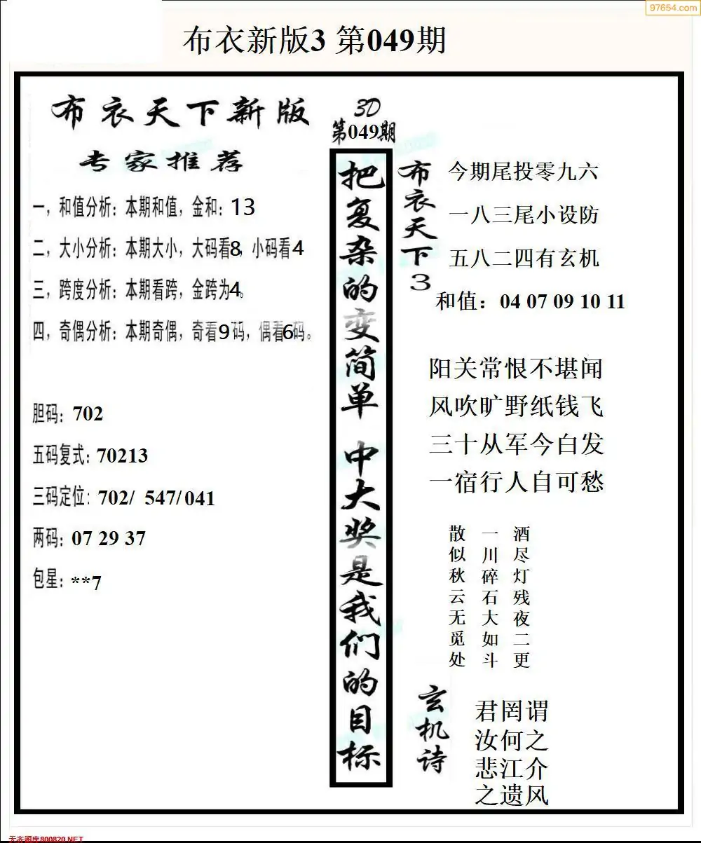 26049期早版布衣天下3D图迷