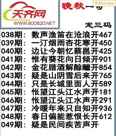 049期3D晚秋(乙种和值)谜:与福无恙 D:年初时光