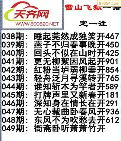 彩票3d字谜049期雪山飞狐一语定一注